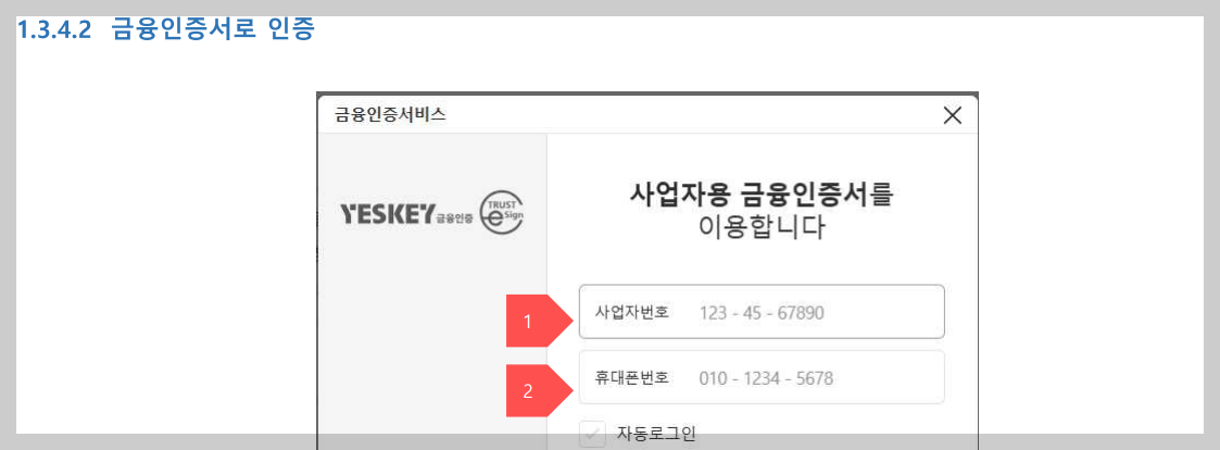 4. 공동인증서진행시 인증서 소유자 확인을 위한 사업자등록번호입력 금융인증서 진행시에도 사업자등록번호와 기타정보를 입력하여 기업회원 인증을 진행합니다.