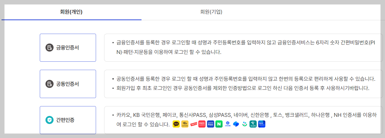 2). 개인회원 간편인증로그인을 진행합니다.