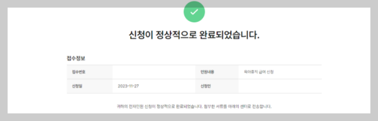 8). 제출한 신청서가 회수되며 수정이 가능해집니다. 단, 접수완료, 처리완료 상태일 경우에는 회수가 불가능합니다.