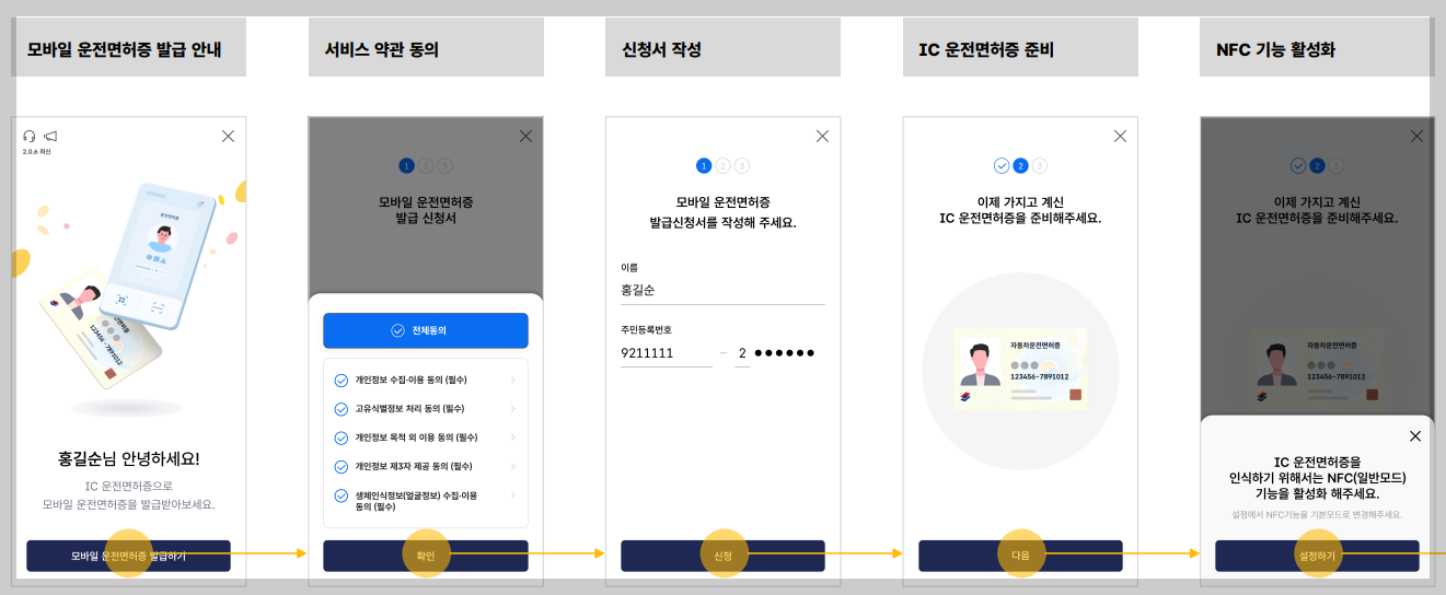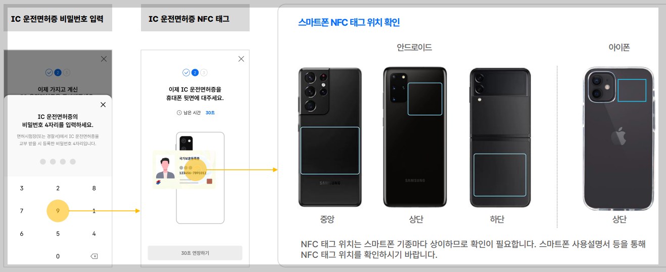 7. IC운전면호증 비밀번호입력및 NFC태그 진행합니다.