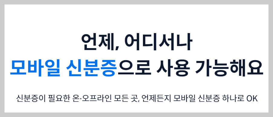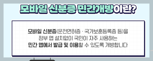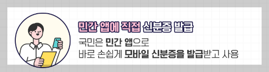 2024년 3월이후 민간 앱에서도 편리하고, 안전하게 모바일 신분증을 이용가능하게 되었습니다.이제는 정부가 제공하는 모바일 신분증 앱 없이도 평소에 자주 사용하는 앱에서 모바일 신분증 서비스를 이용할 수 있습니다.
