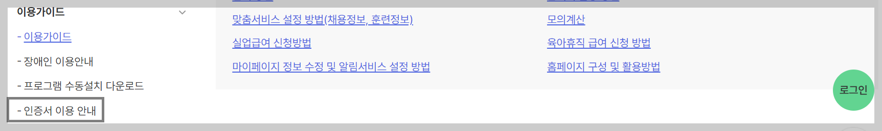 3. 왼쪽 하단부 인증서 이용안내를 클릭합니다.