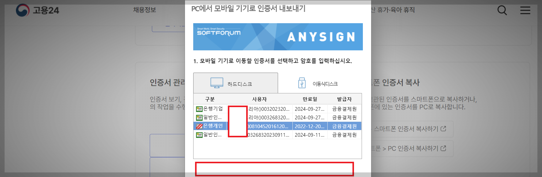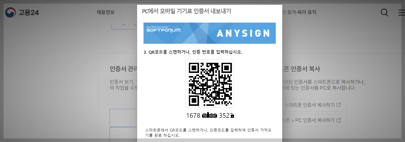 기업회원이나 개인회원중 고용24 홈페이지 이용시 공동인증서 사용 시기는 개인회원일경우에는 고용24 서비스중 공동인증서가 필요한 서비스 이용하실때에는 공동인증서가 필요하며 기업회원일경우에는 공동인증서를 필히 사용하여 로그인및 민원신청과 같은 서비스를 이용할 수 있습니다. 공동인증서를 발급 받은후 휴대폰에서 공동인증서 복사여 이용하고자 하실때에는 PC에 발급받은 공동인증서를 휴대폰으로 공동인증서를 복사하여 사용 할수 있습니다. 공동인증서 복사방법은 고용24 홈페이지 공지사항에서 PC에서 모바일로 공동인증서 복사하기 가이드를 통해 공동인증서를 휴대폰으로 복사할 수 있습니다. 예전에는 USB 또는 컴퓨터와 휴대폰연결 잭을 이용하여 복사하였지만 지금은 QR코드 또는 시크릿 12자리 번호를 이용하여 매우 간편하게 이동 복사 할 수 있습니다. 공동인증서 복사하기전에 QR코드인식 앱 또는 고용24 모바일로 접속하여 공동인증서를 복사하기 준비를 하여야합니다. QR코드앱은 필수가 아니며 QR코드앱 없이도 쉽고 간편하게 고용24 공동인증서를 가져올 수 있습니다.