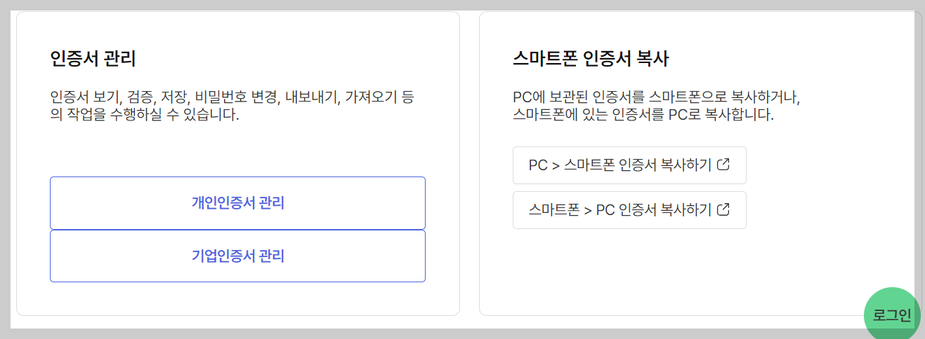 | 금융인증서 | 용도제한용 | 은행/신용카드/보험 및 정부 민원 업무 |