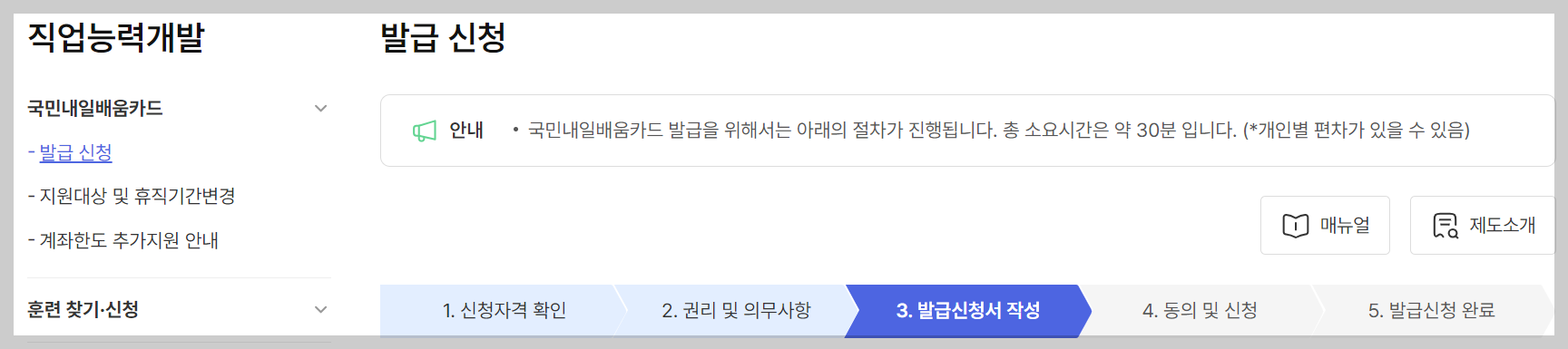 직업훈련을 위한 국민내일배움카드 발급신청, 그리고 각종 훈련에 대한 검색/신청, 훈련기관 검색 서비스를 제공합니다.