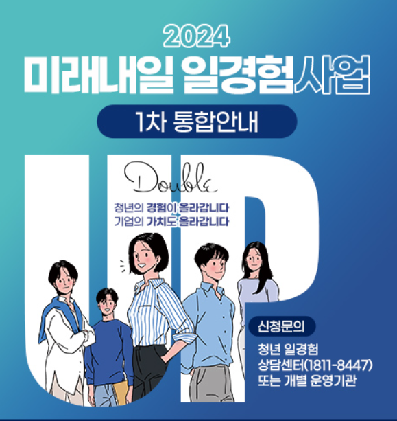 고용노동부가 진행하는 미래내일 일경험사업 참여대상은15세~34세 이하 미취업 청년 (*ESG지원형 18세이상~34세이하 미취업 청년)이며 올해 2024년에는 미래내일 일경험 사업 참여인원은 47,500명을 모집하고 있으며 미래내일 일경험 사업에 관심있는 분청년들은 인원 마감전에 운영기관에 신청하여 미래내일 일경험 사업에 참여하시기바랍니다. 미래내일 일경험 사업의 유형(종류)으로는 인턴형,ESG지원형,기업탐방형이 있습니다. 미래내일 일경험 사업에 참여하고자 하고자하시는분들은 우선 고용24 홈페이지 가입이 완료 된 분들만 참여가능하오니 이 점 유의하시고 아래 고용24 홈페이지 회원가입후 고용24홈페이지 또는 미래내일 일경험 사업 홈페이지에서 지원하시기 바랍니다.