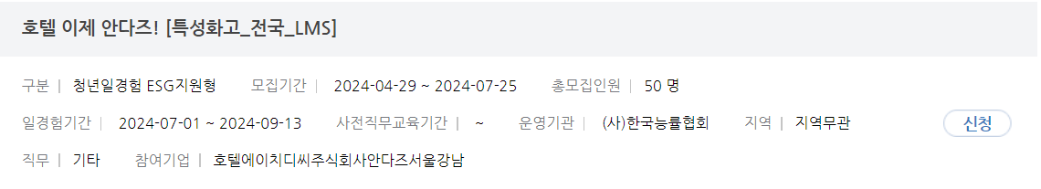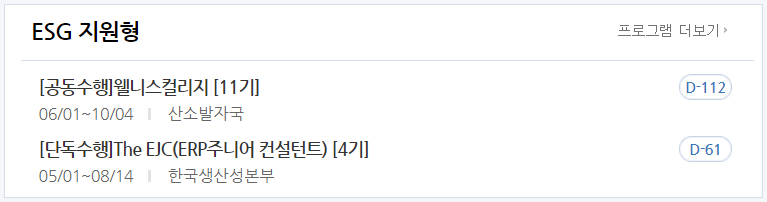 3. ESG지원형 : 취업역량을 제고할 수 있는 직무훈련, 일경험으로 구성된 혼합유형 일경험 프로그램으로 활동기간은 6개월 이내 입니다. 청년 참여수당은 기업 프로그램별 상이하므로 참여시 확인바랍니다.