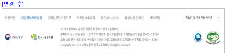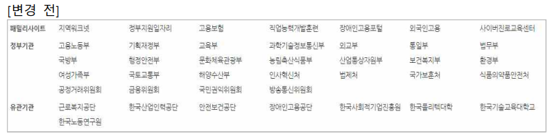 - 패밀리 사이트에 청년도전시원사업, 미래내일일경험사업, 고용형태공시제 등 유관 사이트 추가