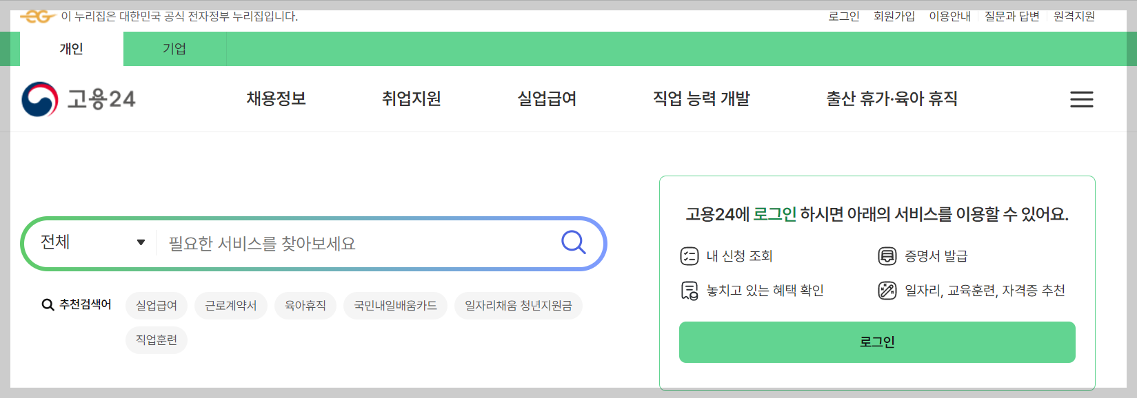 1. 고용24 홈페이지에 접속합니다.