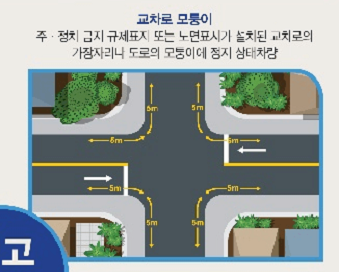 교차로의 가장자리나 도로의 모퉁이로부터 5미터 이내의 곳