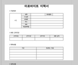직장생활에서 가장 중요한 부분이 자신의 능력을 PR하는것이 매우 중요합니다. 능력이 뛰어나더라도 자신의 능력을 윗사람이나 책임자에게 자신을 보여주지못한다면 연봉협상이나 임금인상에서 다소 불리할수 있는것이 사실입니다. 처음 기업 면접시에도 이부분은 매우 중요합니다. 자신의 PR할수 있는 방법은 면접을 잘보는것도 있지만 먼저 면접을 보기전 서류를 통과하기 위해 자신의 능력을 PR 할수 있는 수단이 이력서입니다. 이력서는 자신의 첫 인상이자 자신을 PR 하는 가장 중요한 첫 관문입니다.이력서를 대충 작성하거나 허접한 이력서를 사용한다면 서류통과조차 못한는것이 현실입니다.