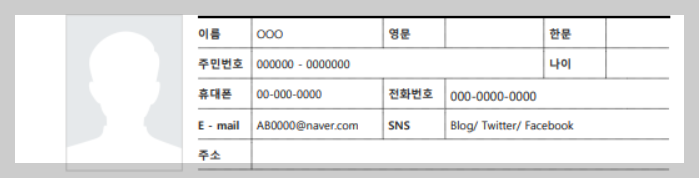 수많은 이력서중 기업 인사담당자가 짧은 시간 내에 지원자의 인적 사항에 대해 알 수 있도록 일목요연하게 작성하도록 한다. 출신학교나 자격증 뿐 아니라 수상 경력, 대내외적인 활동 등 자신의 능력이나 장점을 돋보이게 할 수 있는 사항을 기술하여 인사담당자의 시선을 짧은 시간에 사로잡게 하는 것이 중요합니다.