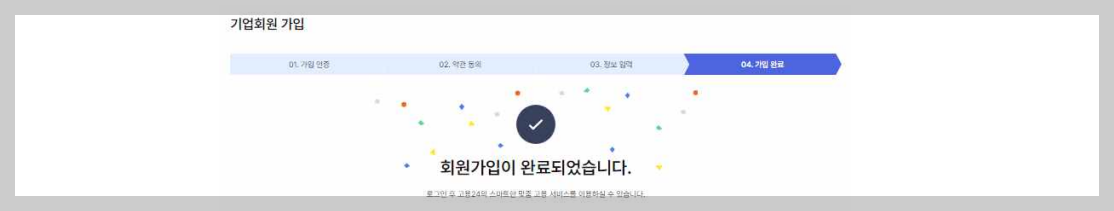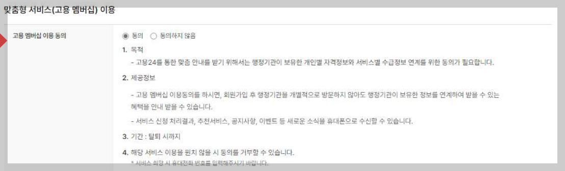 7. 마지막으로 맞춤형 서비스이용에 대한 동의나 동의하지 않음을 체크하시면 기업회원가입이 완료됩니다.