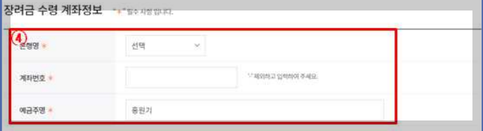 ④ 훈련과정 참여 중 국가로부터 지원받는 장려금 수령 계좌정보를 등록합니다.