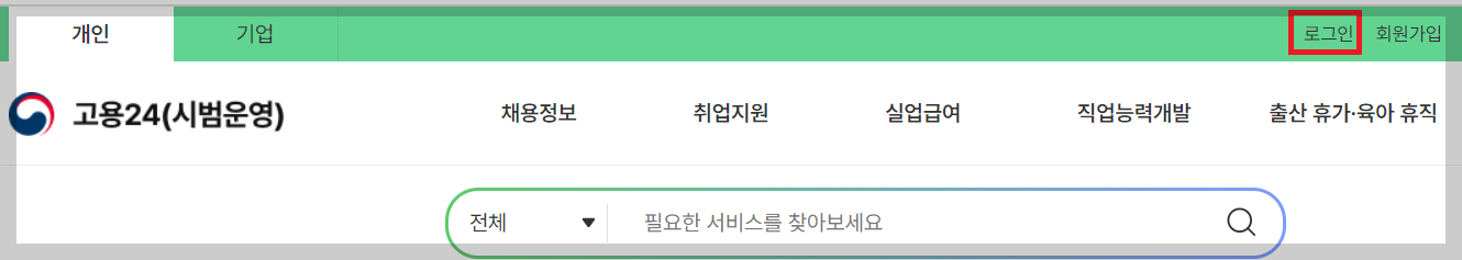 1. 고용24 홈페이지에 접속하여 회원가입또는 본인인증후 로그인진행합니다.
