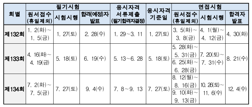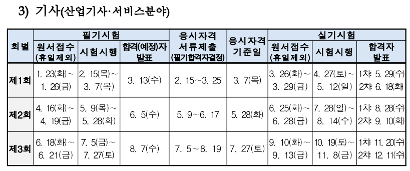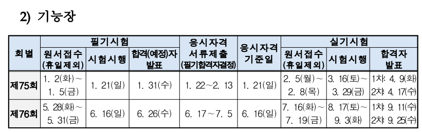 ※ 종목 별 시행 일정이 상이하므로 해당 종목의 등급 및 종목별 시행 회를 확인하시기바람