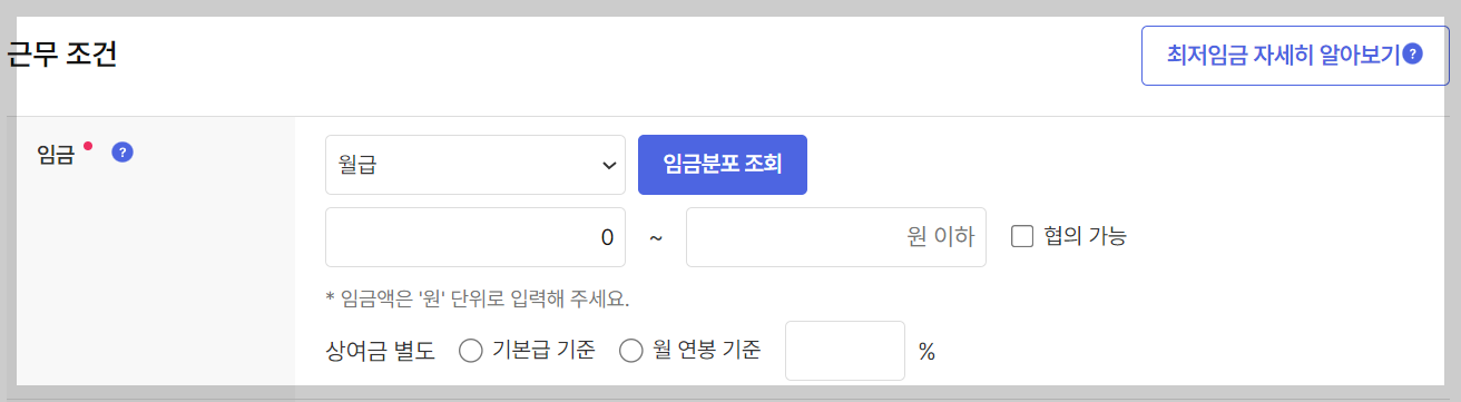 5.근무시 우대사항 및 복리후생을 입력하는 영역으로, 우측 화살표 해당 영역의 입력 항목이 노출됩니다.
