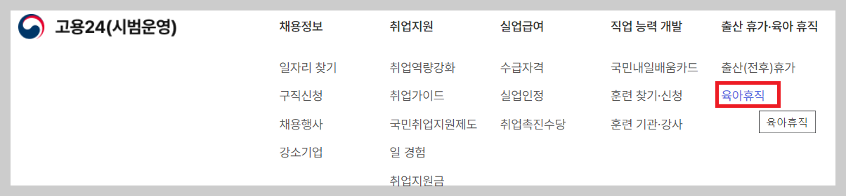 3). 고용24 홈페이지 개인회원로그인 후 유아휴직란을 통해 신청진행합니다.