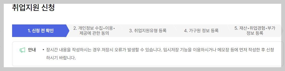 6) 국민취업지원신청 순서대로 진행합니다.
