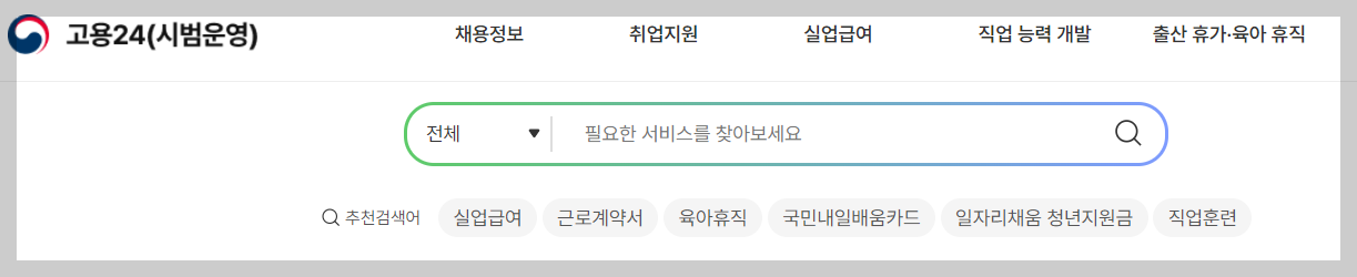 1) 위 링크를 통해 고용24홈페이지 접속합니다.