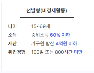 2유형 참여자란 특정계층 : 결혼이민자, 위기청소년, 월 소득 250만원 미만인 특수형태근로종사자, 영세 자영업자 등,청년: 18세~34세 구직자, 중장년 : 35~69세 구직자 중 중위소득 100% 이하인 사람)