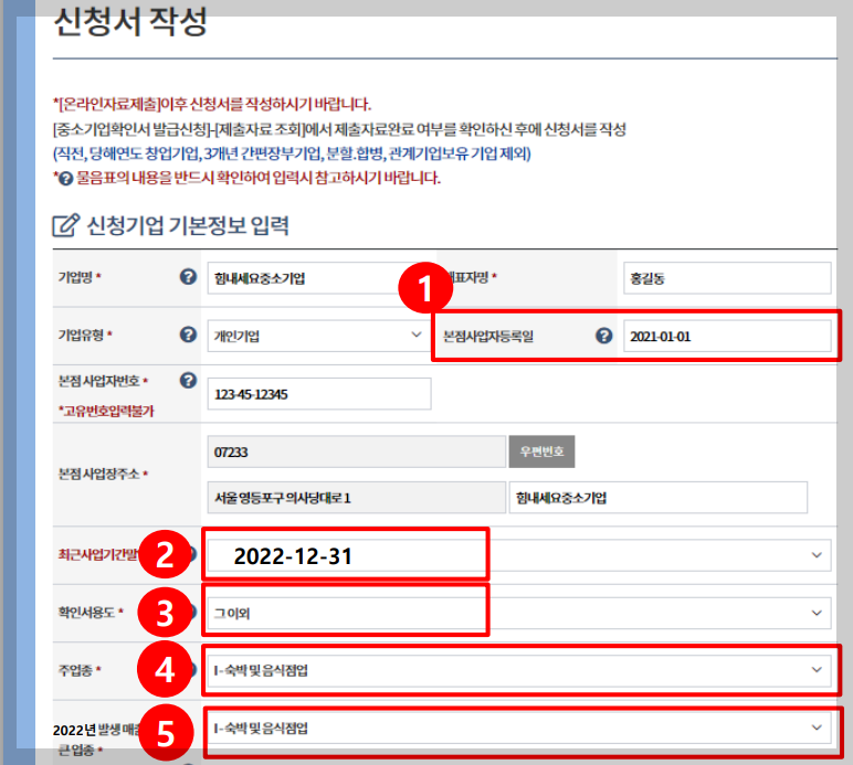1) 사업자 번호 2) 기업명 3) 사업장 주소