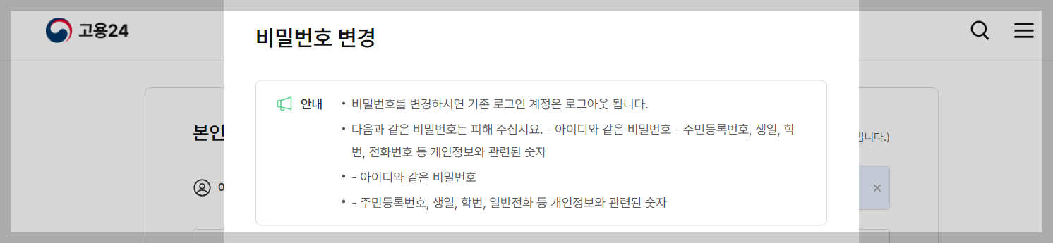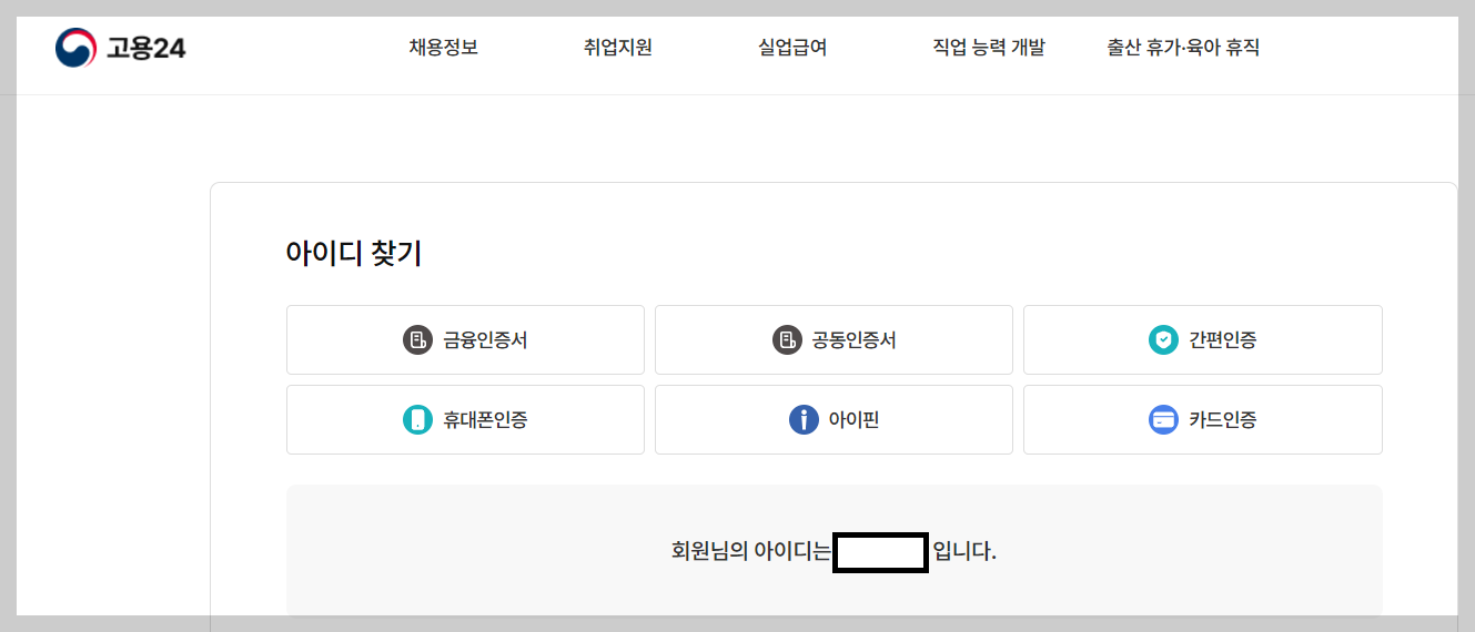 5). 인증후 본인의 고용24 회원 아이디를 찾을수 있습니다.