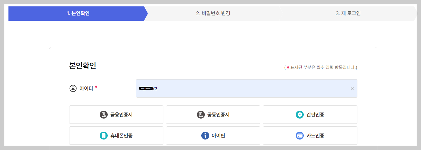 3). 본인증방법중 휴대폰 간편인증 선택합니다.(다른인증방법 선택가능)