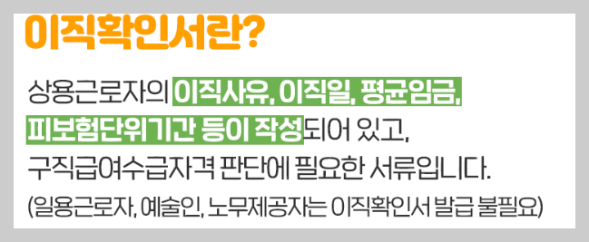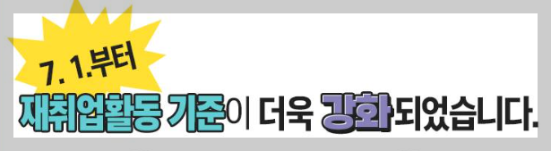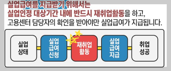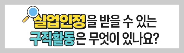 | 구직활동 | -구인업체 방문 또는 우편, 인터넷 등을 이용하여 구인에 응모한 경우 -채용 관련 행사에 참여하여 구인자와 면접을 본 경우 -당해 실업 인정일부터 30일 이내에 취업하기로 확정된 경우 |