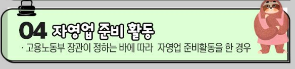 | 자영업 준비 활동 | -고용노동부 장관이 정하는 바에 따라 자영업 준비활동을 한 경우 |