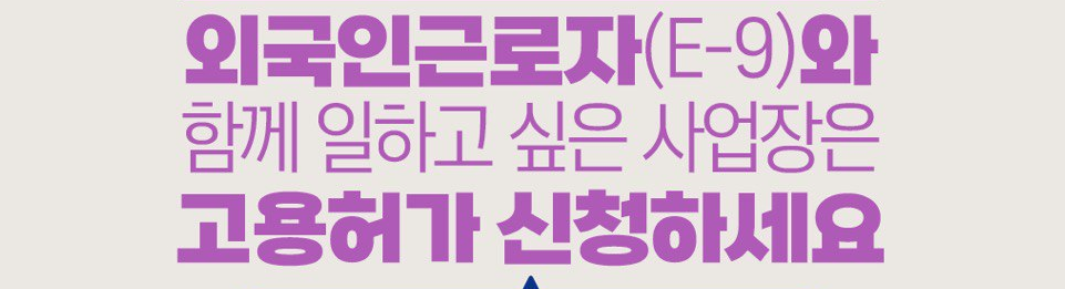 외국인노동자 고용허가제는 중소기업이 내국인을 구하지 못해 국가(정부)로부터 고용허가서를 신청후 발급받아 합법적으로 비 전문기술자 외국인력(E-9)을 고용할 수 있도록 하는 제도로서, 외국인근로자를 체계적으로 도입하고 관리함으로써 원활한 외국인노동자 인력수급 및 국민 경제의 균형있는 발전을 도모하는 것을 목적으로 두고있으며 외국인노동자 고용허가제 도입국가(16개국)은 인도네시아, 네팔, 캄보디아, 우즈베키스탄, 키르기스스탄, 스리랑카, 방글라데시, 필리핀, 파키스탄, 미얀마, 동티모르, 베트남, 태국, 몽골, 중국, 라오스 등이 있습니다.