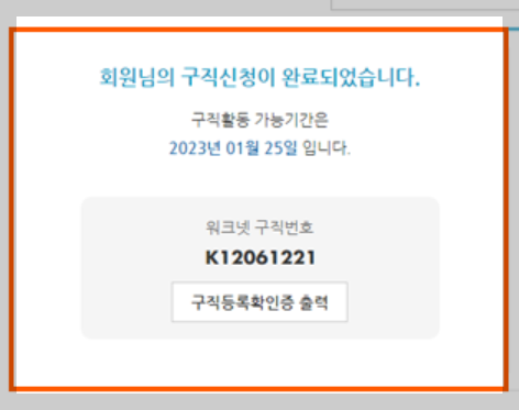 8. 구직신청완료되었습니다. 이후 취업을 하였거나 구직활동이 불필요시에는 우측 구직신청 취소를 진행합니다.